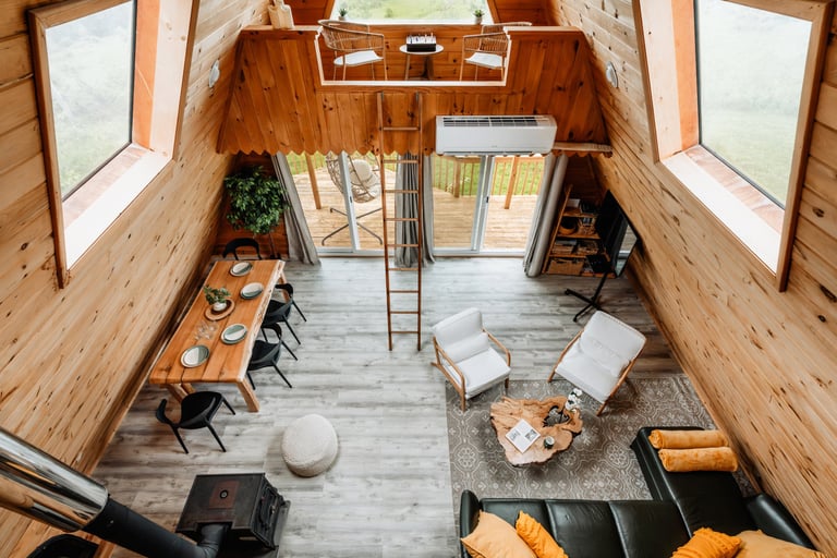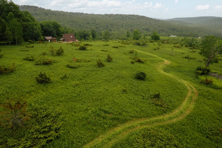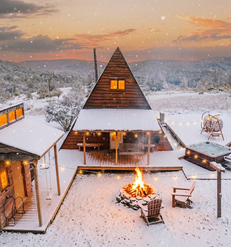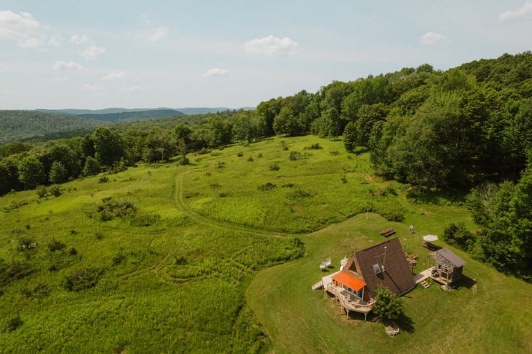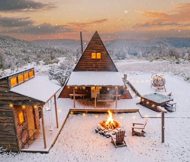 Nestled on 25 acres, our cozy A-frame cabin offers peaceful solitude and a private UTV trail for your outdoor adventures.